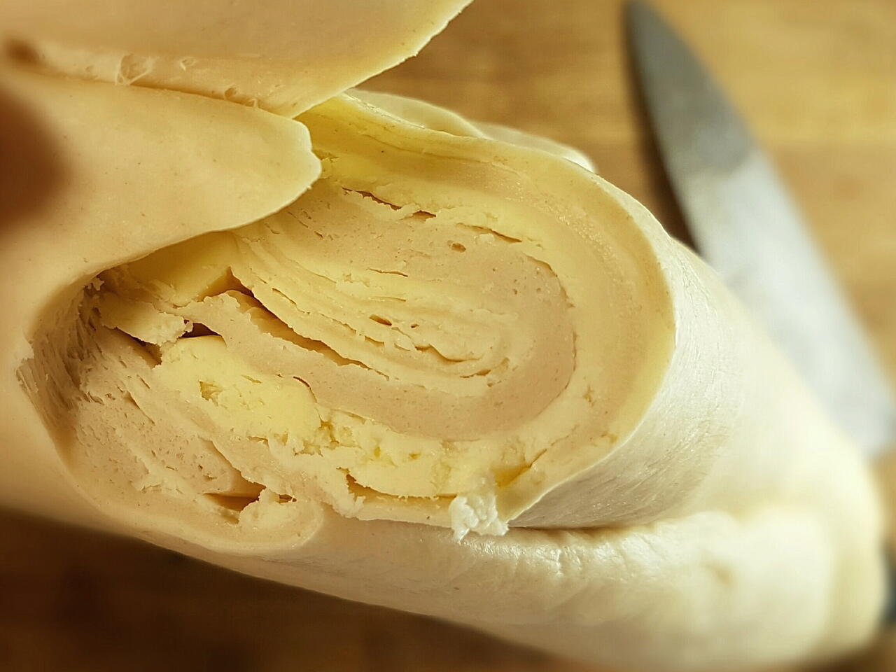 The dough needs to be cold to cut it.